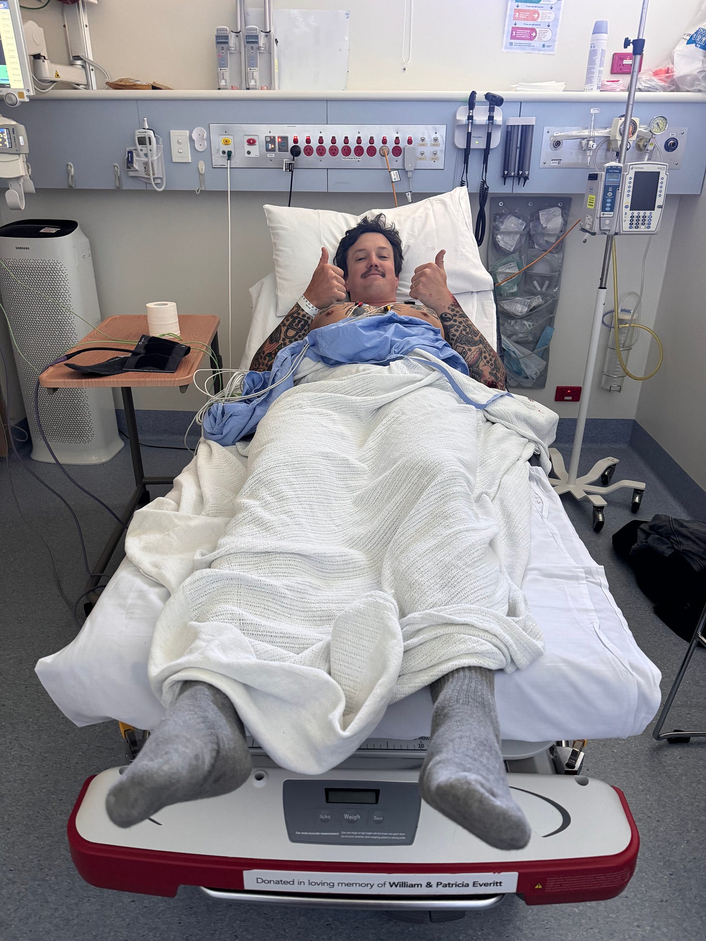 Overall, I was ok. I was super sore all over but I was sure I had not broken anything. My ankle was killing me and blood was running out from my left sleeve and funnily I was really pissed off I had to cancel on Veary. Zoe arrived just before an ambulance that a passer-by had called for me and I was transported to Rosebud Hospital. The paramedics asked me several questions and when I couldn’t answer a couple of them, I could tell they were concerned. I started to worry that I had done a proper whoopsie on myself.